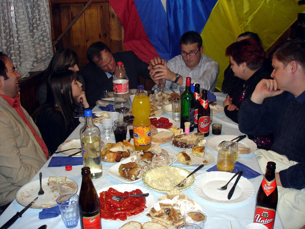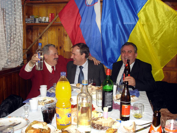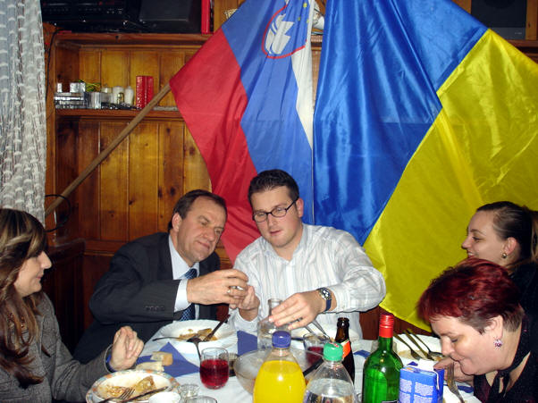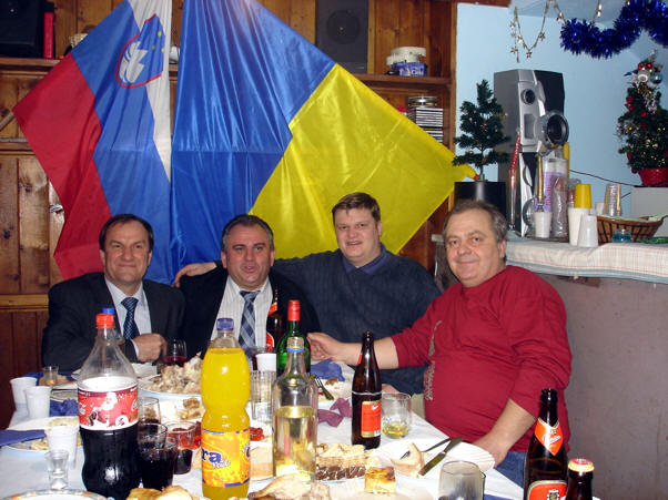Святкування »старого« Нового Року, 13.1.2007Цього року товариство »Карпати« знову вирішило святкувати Новий Рік за Юліанським календарем. І причина не в тому, що ми хочемо якось вирізнитися чи не поважаємо свята, яке святкує більшість людей на Європейських просторах. Бажаємо лише запропонувати щось, що виходить за рамки повсякденності, зібрати разом наших членів і друзів, почастувати шановних гостей, запросити на зустріч членів Посольства України, сказати кілька підбадьоруючих слів і скуштувати страви української та словенської кухні. У цій розповіді описано зміст нашої зустрічі.Як бачимо на наведених нижче фотографіях, усе замислене було в точності виконано. Шкода лише, що не можемо почути усіх гарних слів, промовлених на зустрічі, послухати музичні номери і скуштувати смачної їжі, приготованої з нагоди свята. Тому запрошуємо всіх допитливих і зацікавлених у знайомстві з нащадками козаків … Своєю присутністю нас вшанували дорогі представники Посольства України. Пан Посол Станіслав Єжов виголосив гарну промову і поздоровив присутніх українською мовою. Він не забув побажати нам багато щастя й здоров'я. Згадав також зразкову співпрацю з товариством »Карпати« і висловив бажання, щоб здійснилися наші спільні цілі. Пан секретар Андрій Гевка подякував Послові за добрі слова, виступив із промовою сам і запросив усіх присутніх розпочати урочисту вечерю у супроводі приємної української музики. Кількох присутніх зацікавило, чому ми святкуємо Новий Рік за Юліанським календарем і чому вживаємо вираз »Новий Рік за старим стилем«. Щоб не було непорозуміння і помилкових даних, що цього календаря дотримуються лише вірники православні, сповіщаємо, що йдеться про набагато ширший обсяг. Серед інших його зберегли також ми Українці й Русини – греко-католики. Для кращого розуміння Юліанського календаря пропонуємо офіційне тлумачення, взяте з Інтернетної енциклопедії. Там написано так Юліанський календарМатеріал з Вікіпедії — вільної енциклопедії.Юліанський Календар - був введений починаючи із 1 січня 45 р. до н.е. Юлієм Цезарем у кінці 46 до н.е. Опираючись на поради грецького астронома Созігена (Sosigenes) та з метою добитися того, щоб певні астрономічні події на зразок весняного та осіннього рівнодення відбувалися щороку в певний цілком визначений день, Цезар узгодив тривалість року із сонячним календарем, тобто встановив її рівною 365 із чвертю дня ( 365.25). Четвертинки дня враховувалися наступним чином: кожного четвертого року до календаря додавався ще один день, і тривалість місяця лютого ставала не 29, а 30 днів. Свого часу Гай Юлій Цезар пожартував: "Римляни завжди перемагають, але ніколи не знають коли це трапилося." Ім'я Цезаря вшановано у латинській назві сьомого місяця (тодішнього п'ятого) - Julius. Пізніше, Октавіан Август виправив конструкцію високосного року, і восьмий місяць на його честь був названий Augustus. А щоб не осоромитися перед імператором-попередником, місяць серпень Augustus також отримав 31-й день, який взяли з кінця року - 29/30 лютого. Таким чином лютий вкоротився й став тривати 28 днів звичайного року й 29 високосного. Але юліанський рік тривалістю в 365 днів і 6 годин довший за істинний сонячний рік (365.2422 днів, або 365 днів, 5 годин, 49 хвилин і 46 секунд) на 14 хвилин 11 секунд. Різниця складає близько 0.0078 дня за рік або близько одного дня за 128 років.