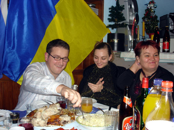 Praznovanje »starega« novega letaTudi letos se je društvo »Karpati« odločilo praznovati novo leto po Julijanskem koledarju . Razlog ni v tem, da hočemo biti nekaj posebnega ali izjemnega ali da ne upoštevamo tistega, kar praznuje večina ljudi na evropskih prostorih. Želimo samo ponuditi nekaj nevsakdanjega, zbrati skupaj naše člane in prijatelje, pogostiti cenjene goste, povabiti na srečanje člane ukrajinskega Veleposlaništva, povedati kako spodbudno besedo in poskušati dobrote slovenske in ukrajinske kuhinje. V teh besedah je napisano bistvo našega druženja.Še posebej se bomo zahvalili družini Josipa Bjeloga. Njegova žena Ruža je dala poseben pečat našemu druženju. S svojo dobrohotnostjo in gostoljubjem je vse nas prijetno presenetila. Dala nam je koristne nasvete: kako mora potekati slavnostna večerja in kaj je vse potrebno ob taki priložnosti. Na pomoč je še poklicala svojo sestro Jeleno s katero sta pripravili okusno pojedino: juho, sarmo, dekoracijo ipd.Želimo se zahvaliti tudi vsem drugim, ki so sodelovali pri organizaciji novoletnega srečanja in še enkrat zaželeti veliko sreče, zdravja in osebnega zadovoljstva vsem, ki so nas obiskali in vsem tistim, ki so bili z nami v mislih in spominih.Kakor vidimo na spodnjih slikah vse je bilo realizirano in natančno opravljeno. Škoda je samo, da ne moremo poslušati vseh lepih besed, ki so bile izrečene na tem srečanju, poslušati glasbene točke in da ne moremo poskusiti slastnih jedi, ki so bile pripravljene. Zato ste vabljeni vsi, ki ste radovedni in se želite seznaniti z nasledniki kozakov …S svojo prisotnostjo so nas počastili cenjeni predstavniki ukrajinskega Veleposlaništva. Gospod Stanislav Ježov je z lepimi besedami pozdravil vse navzoče v ukrajinskem jeziku. Ker ve, da vsi potrebujemo veliko sreče in zdravja, tega ni pozabil povedati. Omenil je tudi zgledno sodelovanje z društvom »Karpati« in željo, da se nam uresničijo skupni cilji.G. tajnik Andrija Hevka se je zahvalil Njegovi ekscelenci na lepih besedah in željah, zaželel enako vsem prisotnim ter povabil vse navzoče, da začnejo s slavnostjo večerjo ob poslušanju prijetne ukrajinske glasbe.Nekaj navzočih je bilo še bolj radovedno, ker niso vedeli zakaj praznujemo novo leto po Julijanskem koledarju in zakaj uporabljamo besedo staro novo leto. Da ne bo pomote in napačnih informacij, da ne bi mislili, da ta koledar velja samo za pripadnike pravoslavne veroizpovedi, vas seznanjamo, da gre za veliko širše razsežnosti. Med drugim smo ga obdržali tudi Ukrajinci in Rusini – greko - katoliki .Za boljše razumevanje Julijanskega koledarja vam bomo postregli z uradno razlago povzeto po svetovni enciklopediji. Tam pa je napisano sledeče:Julijanski koledarIz Wikipedije, proste enciklopedijeJulijánski koledár je vpeljal Julij Cezar 1. januarja leta 45 pred našim štetjem. Začel je veljati od leta 46 pr. n. št. Največ zaslug za uvedbo tega koledarja gre grškemu astronomu Sosigenu. Koledar odseva težnjo približati se dolžini tropskega leta v tistem času . Koledar je imel navadno leto s 365 dnevi, ki je bilo razdeljeno na 12 mesecev in vsake štiri leta so dodali prestopno leto . Koledar je na nekaterih območjih ostal v veljavi vse do danes, uporablja ga tudi pravoslavna cerkev, večina držav pa uporablja Gregorijanski koledar .