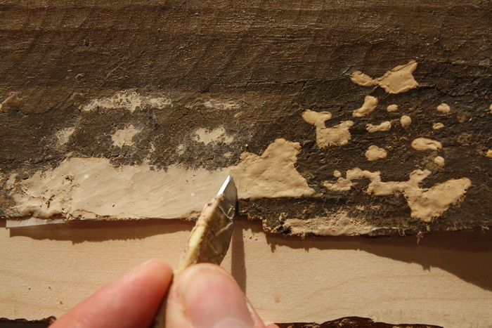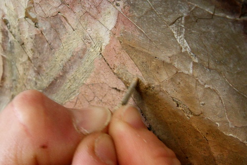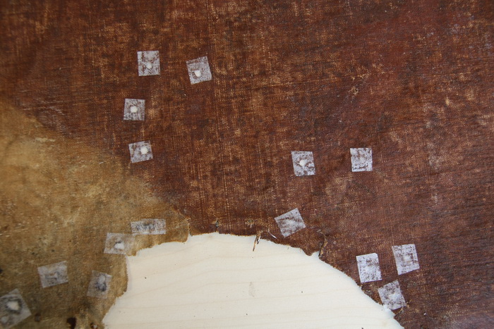Podlepljanje lukenj od žebljev in ostalih poškodb (Beva film + japonski papir).