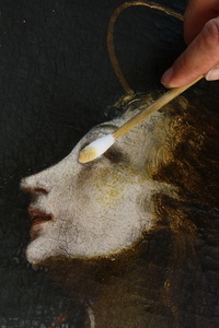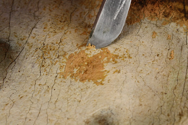 Ko smo odstranili lak, se je ponekod pokazala pastozna preslikava.