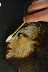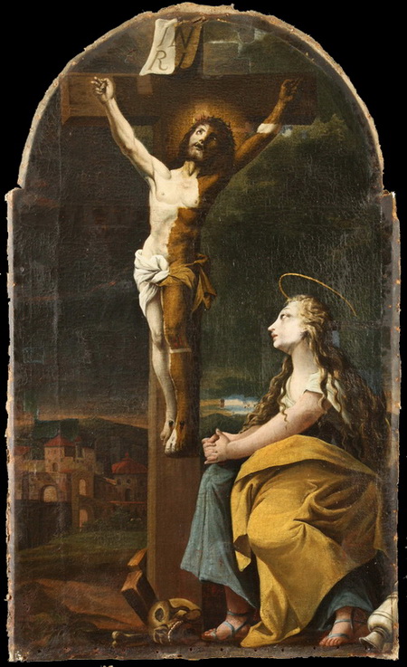 Konservatorsko restavratorski posegi na oltarni sliki Križani z Marijo Magdaleno