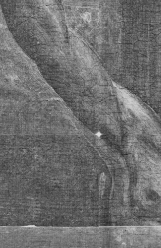 Rentgenski posnetek slike pred konservatorsko restavratorskimi posegi, narejen na Restavratorskem centru v Ljubljani.