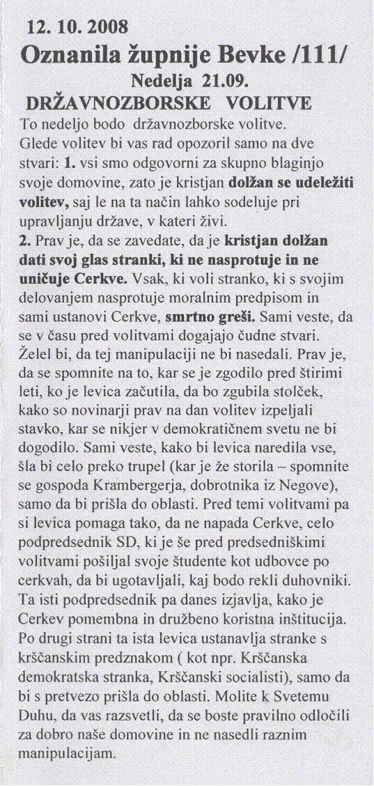 Zapisano 22.9.2008 Zopet sramota v tujini Pred dvema dnevoma sem prebral na teletekstu avstrijske televizije (ORF) kako Rimsko katoliška cerkev dela sramoto celi slovenski državi in naši naciji. Opis na teletekstu je zginil, poiskal sem ga v časopisu der Standard.