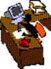 KNJIŽNIČARKINEGA RAČUNALNIKA IN HODITI ZA IZPOSOJEVALNO MIZO |