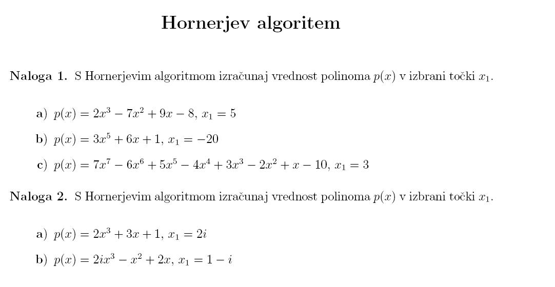 Uporaba hornerjevega algoritma