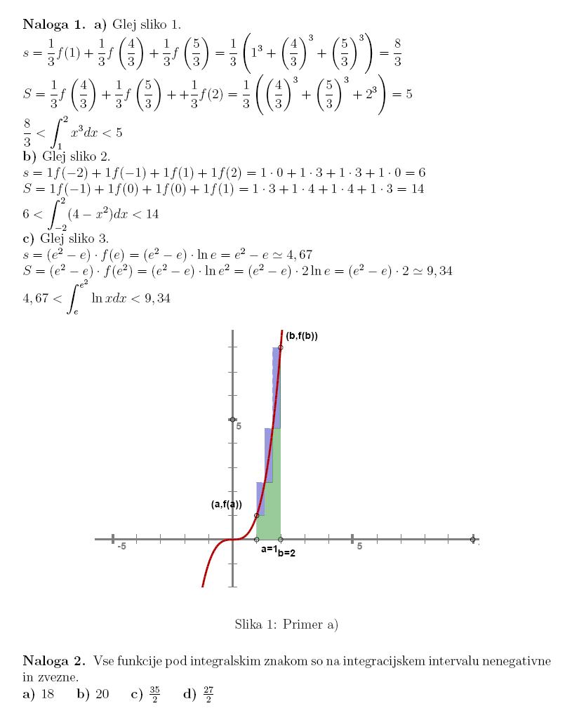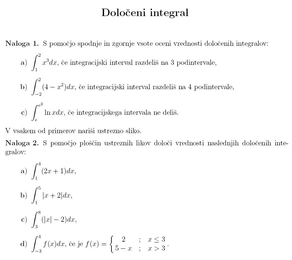 Nedoločeni integral in tabela integralov Pravila za integriranje in integracijske metode Določeni integral Lastnosti določenega integrala