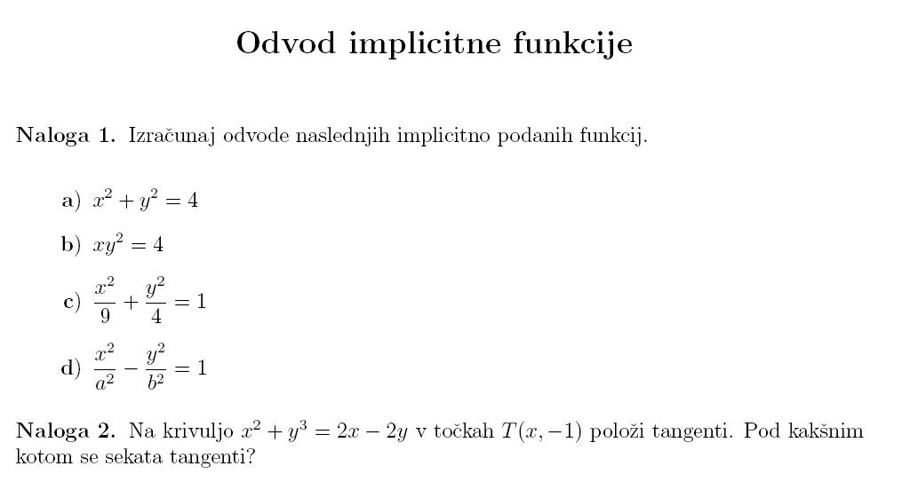 Odvod implicitne funkcije Naraščanje, padanje, stacionarne točke in ekstremi