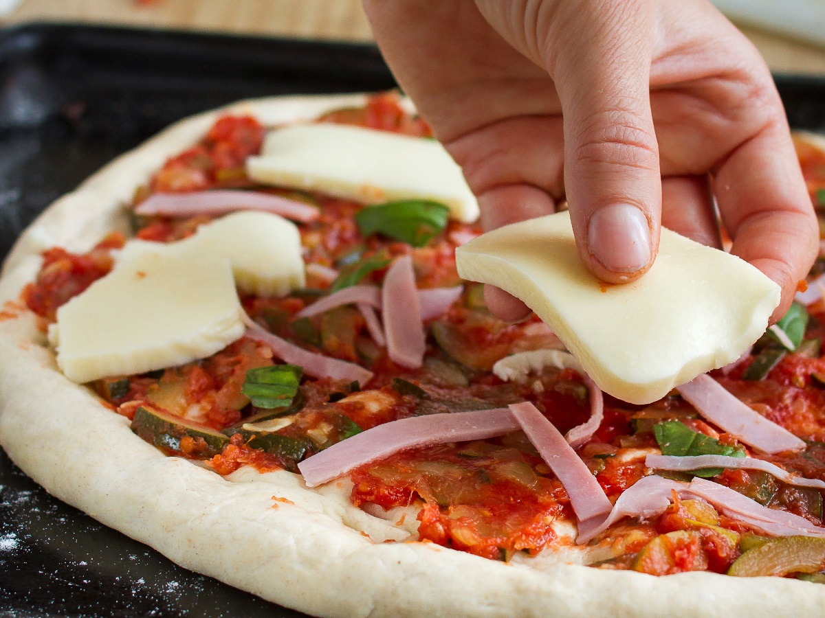 V posodico (kozarec) nadrobimo kvas. Prilijemo 2 dl mlačne vode, dodamo sladkor in eno žlico moketer sestavine gladko razmešamo. Pustimo stati 10 minut, da kvasec malo vzhaja. Moko stresemo na čisto delovno površino in na sredini naredimo jamico. Po moki okoli jamice potrosimo sol, v jamico pa vlijemo olje in vzhajan kvasec. Testo začnemo mešati s prsti ali vilicami od sredine navzven. Postopoma prilivamo preostalo vodo in ko se sestavine lepo sprimejo in dobimo grobo, "pocasto" testo, pričnemo z gnetenjem. Testo dvigujemo in tleskamo ob leseno površino, večkrat pa ga tudi dobro pregnetemo. To delamo toliko časa, dokler se ne loči od dlani in lesene površine. Postati mora voljno, mehko in elastično. Ugneteno testo oblikujemo v hlebček in vanj po vrhu zarežemo križ, da bo lažje vzhajalo. Položimo ga v pomokano skledo in pokrijemo s čistim prtičem. Pustimo, da na toplem mestu vzhaja eno uro oziroma toliko časa, da se njegov volumen podvoji. Testo ne sme vzhajati prehitro in ne sme biti na prepihu. Vzhajano testo stresemo na rahlo pomokano delovno površino. Narahlo in prav na hitro ga pregnetemo, sploščimo ter položimo v namaščen pekač. S prsti ga razpotegnemo do roba ter obložimo s poljubnimi dodatki.