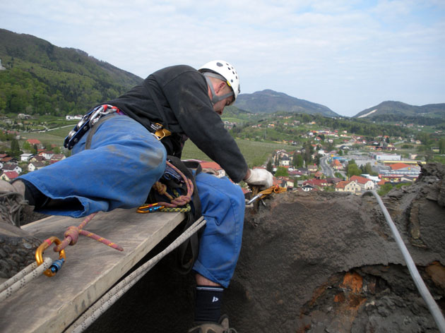 Delo na vrhu 65 m visokega dimnika je bilo izjemno zahtevno