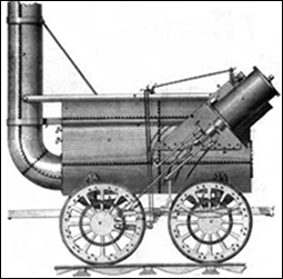 Veliko spremembo je v 19. stoletju doživel promet. Neke vrste železnico so Britanci poznali že pred 19. stoletjem, ko so konji iz rudnikov vlekli vagone, napolnjene z rudo. Le-ti so bili na tirnicah. Leta 1804 je Richard Trevithick prvi priključil vagone na parno lokomotivo, ki sicer ni delovala, vendar je pomenila veliko prelomnico. George Stephenson je leta 1825 osupnil gledalce, ko je njegova lokomotiva premaknila 36 vagonov napolnjenih s premogom in moko. Ta vlak je imel tudi potniški vagon.