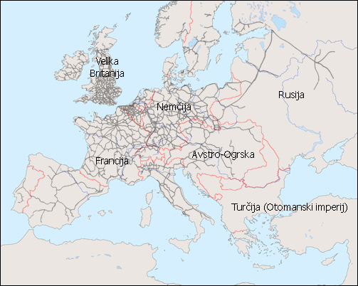 Iz zemljevida razberi, katere tri države so doživele največji razmah železniškega prometa do leta1870.