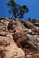 pomoč železne lestve, nato se po grebenu vzpneva na vrh, kjer je čudovit razgled