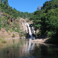 steza vodi pod slap z bazenčkom, v katerem se lahko kopaš. Do