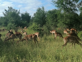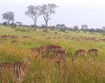 na en obhod. Tu je travnata savana, brez gmičevja. Veliko je zeber, gnujev,