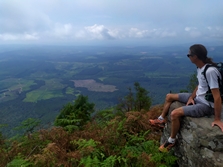 Hodiva po stezici nad prelomom z razgledom na strme deževne gozdove in ravnico