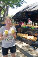 ustaviva, trgovka nama nareže mange in na poti naprej se sladkava. Sledijo