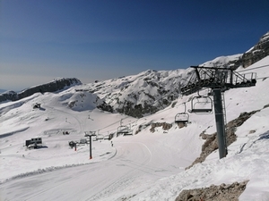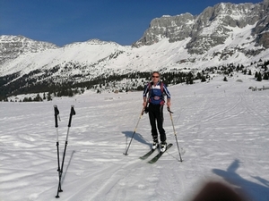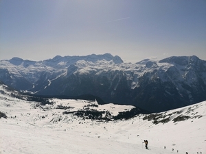 včeraj na Kaninu, smuka odlična. Smučam v smeri vzpona, zadnji del po cesti –
