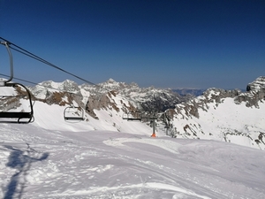 Zopet lepo vreme, nedelja, na pobočju veliko smučarjev. Razmere so še boljše kot