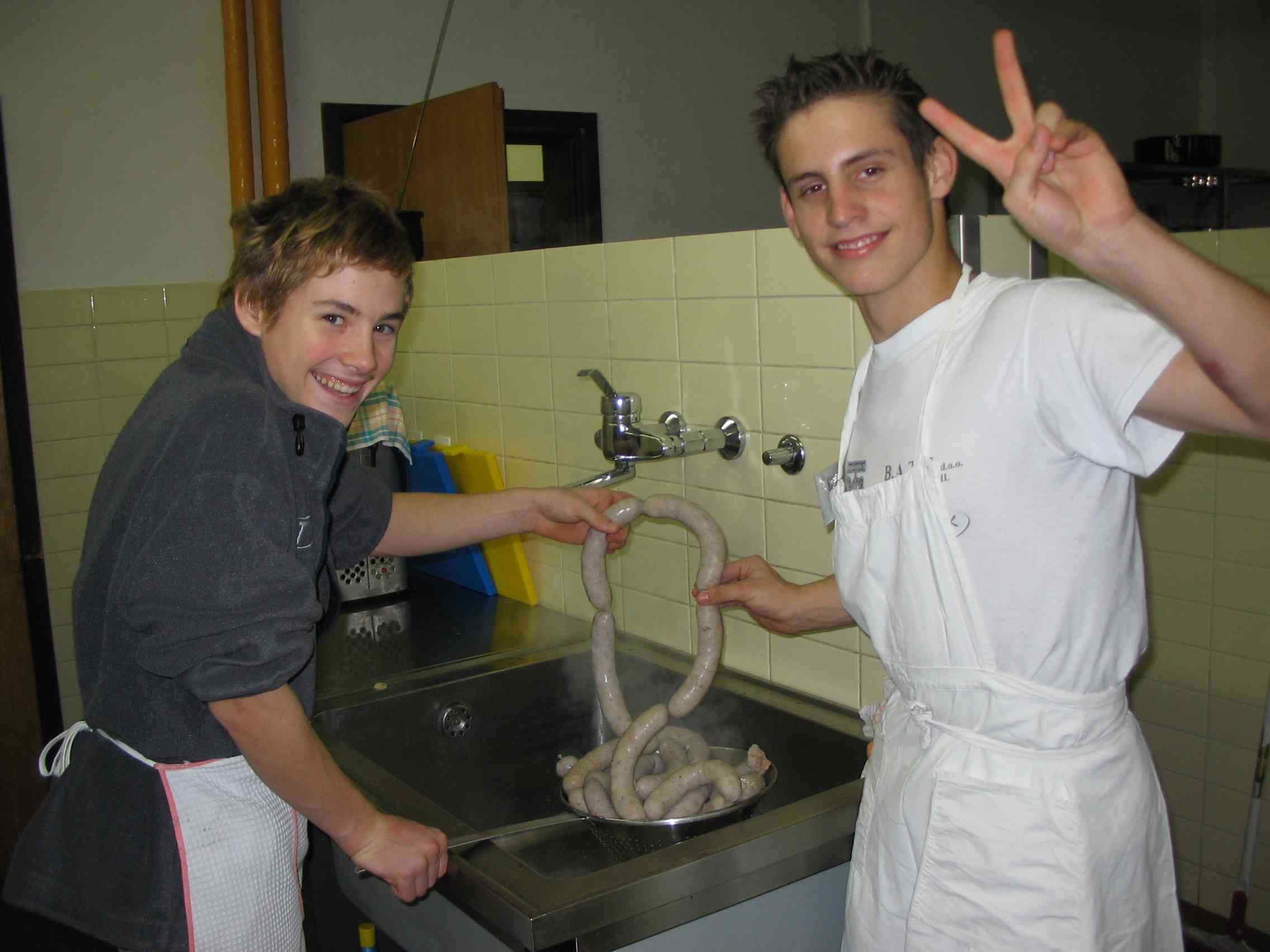 fantje so se lotili priprave klobas |