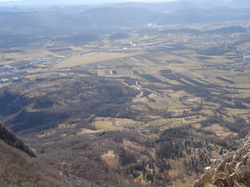na Vipavsko dolino in okoliške hribe, čez Kraško planoto vidimo morje,