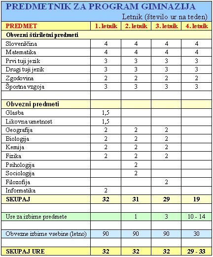 PREDMETNIK prvega letnika je za vse dijake gimnazijskega