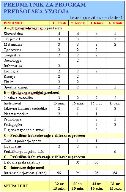 šolanja v okviru triletnega visokošolskega študija.Pri šolanju in