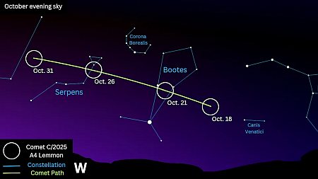 C/2025 A6 (Lemmon) daleč v ozadju, precej stran od Zemlje.