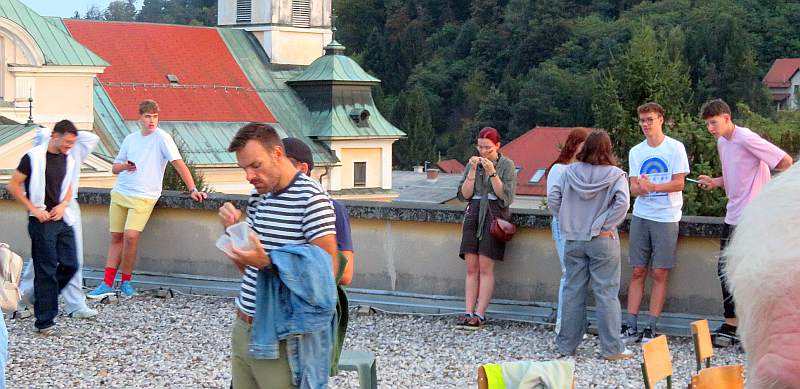 in pozneje na terasi Gimnazije Šentvid - LJ lepo število bivših krožkarjev, mentorjev,
