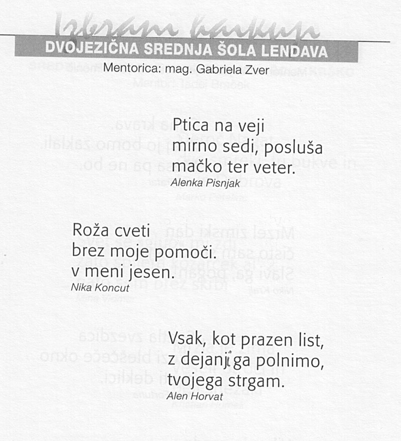 Tudi naši dijaki so sodelovali s svojimi haikuji.