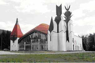 Zgradba je atraktivnega videza, zgrajena po idejnih načrtih znanega madžarskega