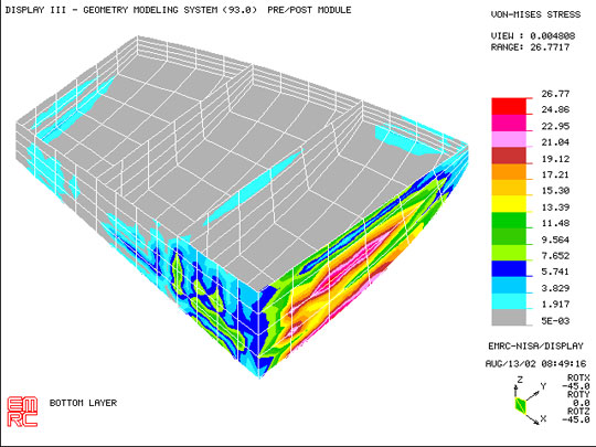 Račun z metodo končnih elementov: napetosti v ladijskem rezervoarju za gorivo.