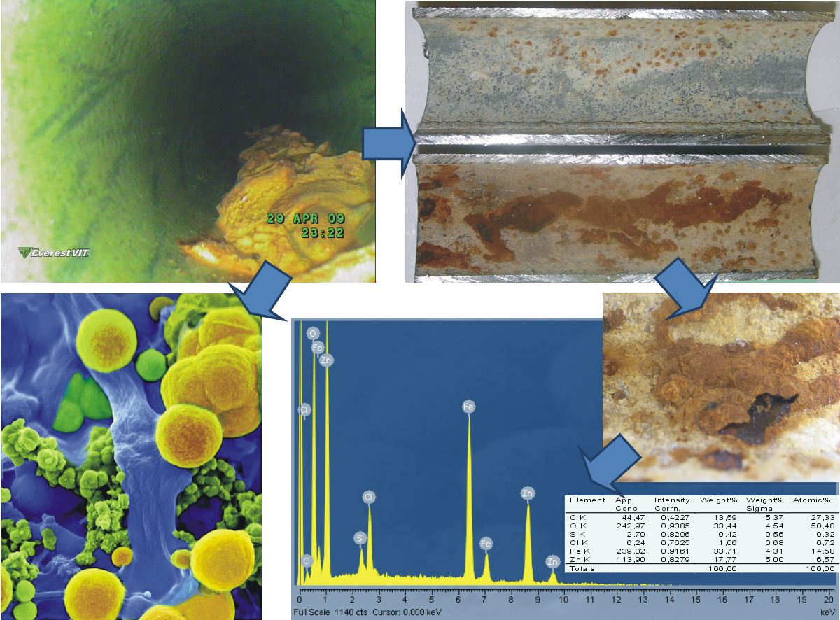 V cevovodu, ki je v osnovi namenjen transportu tekočih, plinastih ali razsutih novi, se lahko pogosto pojavijo zastajajoče oz. mirujoče vode. Mirujoče vode ali vode, katere pretok je majhen predstavljajo potencialno gojišče za razvoj mikroorganizmov. Mikroorganizmi ne predstavljajo nevarnost samo živim organizmom ampak je njihovo delovanje škodljivo tudi neživi naravi oz. raznim kovinski ter ostalim materialom. Bakterije, glivice, alge so mikroorganizmi, ki med drugim povzročajo tudi korozijo kovin in njihovih zlitin. Za tak tip korozije se je uveljavilo ime mikrobiološko vplivana korozija.