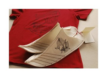 - set of touristic souvenirs: warrior's hat, slippers, badges