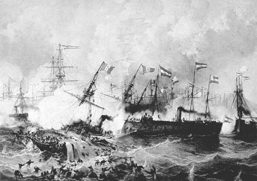 prva pomorska bitka med ladjevji z oklepnicami na parni pogon. Bitka pri Visu je