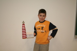 Četrtošolci smo imeli tehniški dan. Izdelovali smo električni krog. Najprej sem izdelal model električnega kroga, potem pa stolp svetilnika iz kartona. Oblepil sem ga z rdečim in belim izolirnim trakom. Lotil sem se izdelave hiške. Škatlo čaja sem izpraznil in jo oblepil s pobarvanim papirjem. Naredil sem še streho, jo pobarval in pritrdil na škatlo. Sedaj sem naredil okroglo streho, ki sem jo pritrdil na pokrovček žarnice. Nazadnje sem samo še povezal baterijo s stikalom, stikalo pa z žarnico in svetilnik je bil končan. Na srečo pri izdelavi ni prišlo do nobenih zapletov. |