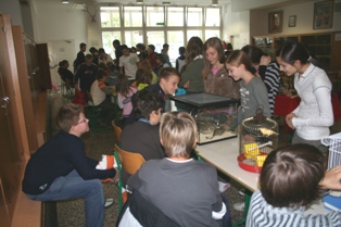 Ob dnevu živali je na naši šoli potekala 3. razstava hišnih ljubljenjčkov. V spodnji šolski avli so učenci pod vodstvom učiteljice Tanje Belič in učencev biološkega krožka razstavljali svoje hišne ljubljenčke. Učenci so prinesli veliko živali. Mačke, pse, miši, skakače, veverico, ribe, želve ter celo kačo iz biološke učilnice. Vsi obiskovalci in učenci nižjih razredov so bili zelo zadovoljni z razstavo in nam predlagali, naj jo izvedemo še kdaj. Učenci biološkega krožka smo se odločili, da bomo izvedli velike predstavitve šolskega vivarija za nižje razrede. Člani krožka želimo, da bi ta dan ostal tradicija na naši šoli. David Hudnik 9.b ![]() |