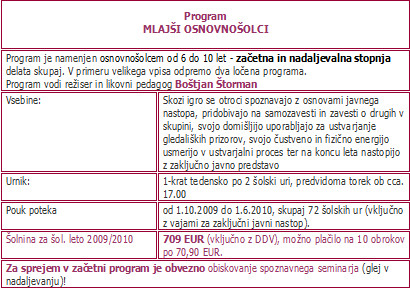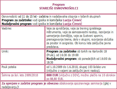 Spoznavni seminar bo potekal po urniku, ki velja za posamezni program, za mlajše osnovnošolce se bo začel 22.9.2009, za starejše osnovnošolce pa 21. 9. 2009.