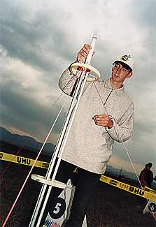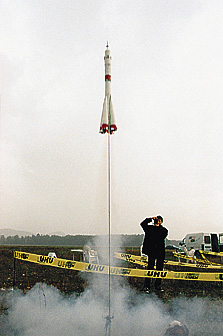 Sweep winged boost glider of Polish Jerzy Boniecki takes-off. |