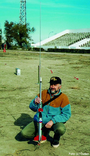 Jože Čuden pred izstrelitvijo dvostopenjske rakete