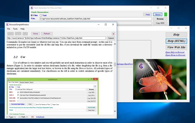 For more many operations I continue to use the command-line application (HashShell), e.g. for verification of data integrity of whole directory structures or encryption. When calculation or verification of cryptographic hashes (checksums) of a few files is all that is needed, I find HashForm more efficient to use because of its graphical interface, drag & drop and browsing functionality.