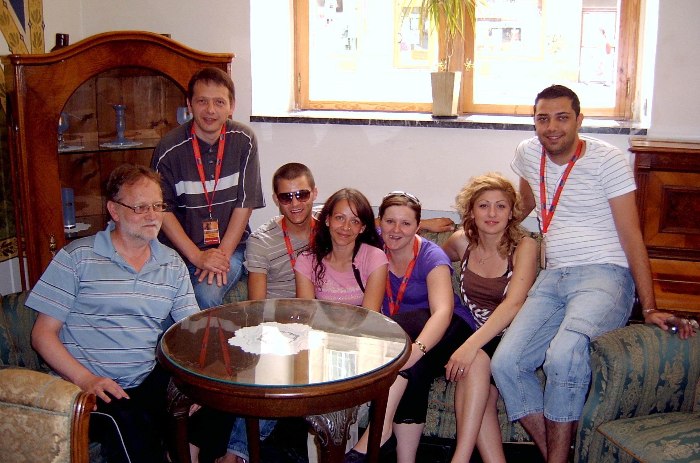 Del udeležencev ustanovnega kongresa društva Romski akademski klub. Od desne proti levi: Vinko Cener, Jasmina Ahmetaj, Samanta Baranja, Enisa Brizani, Aljoša Rudaš, Romeo Varga, Miran Komac. |