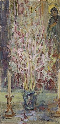 Janez Šibila se izraža z olji in akvareli. Njegov dolgoletni, lahko bi rekli življenjski, cilj je vpet v raziskovanje barvnih učinkov, barvne prefinjenosti in njene "sposobnosti", da realni svet, zlasti naravo, ki ga obkroža, prizadevno proučuje in občuduje. "Premakne", povzdigne jo v poduhovljeno barvno vizijo s posebno svetlobo. Slikarja lahko spremljamo od zgodnjih del, npr. Zelene jabolke, skozi obdobje pozornosti na človeški lik, portret ali pejsaž, s katerimi je umetnik gradil svoj svet z barvnimi harmonijami. Njegov začetni realizem lahko opazujemo prek reminiscenc na Tintoretta (svetlobna poduhovljenost), na Cézanna (kompozicija slike), Renoirja (v smislu barvnega hedonizma), prek vzorov pariške šole, mojstrov 20. stoletja in severnoevropskega ekspresionizma. Tuja mu ni bila niti socialna motivika, bližji pa so mu bili motivi, ki so ponujali lirično ekspresijo. Že v zgodnejših delih je imel umetnik značilno lastno izražanje, svoj duktus, svoj svet barvnih skladnosti, ki jih je izpopolnjeval in razvijl skozi leta. Zlasti v akvarelih iz 90. let je značilna vibrantna atmosfera, ki jo diskretno izžareva bogastvo barvnih odtenkov. V to obdobje sodi njegov akvarel Kamen modrosti, delo v čisti barvni govorici brez predmetne deskripcije. To delo je pri vrhu lestvice umetnikovega napredovanja od začetnih Zelenih jabolk.