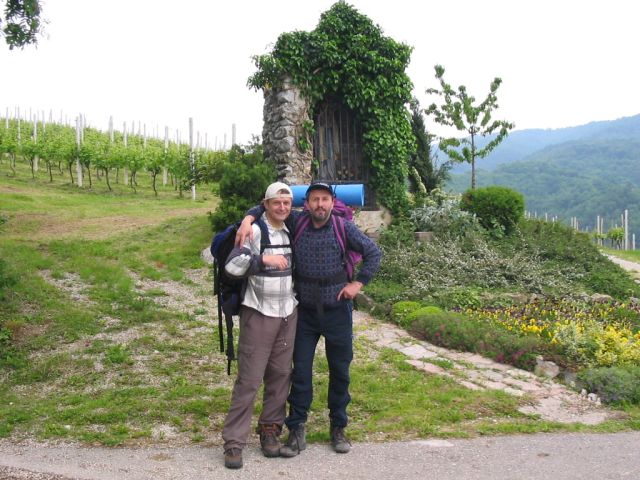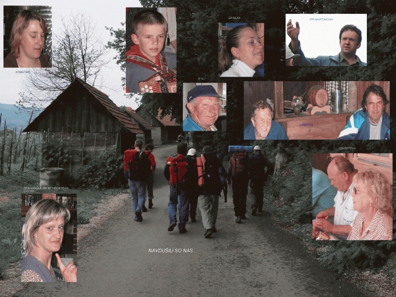 1 - Žel. postaja Brežice 2 - Globočiče, prenočevanje pri Martinu 2A - Srečanje z Vilijem, cviček 3 - Klunove toplice 4 - Gadova peč, prenočevanje Komatar 5 - Srečanje z Lekšetom, špeh 6 - kosilo v Globočicah 7 - Avtobusna postaja Kostanjevica |