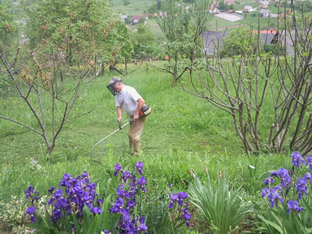 Kontrola nasadov hmelja. Zadaj gora Oljka.