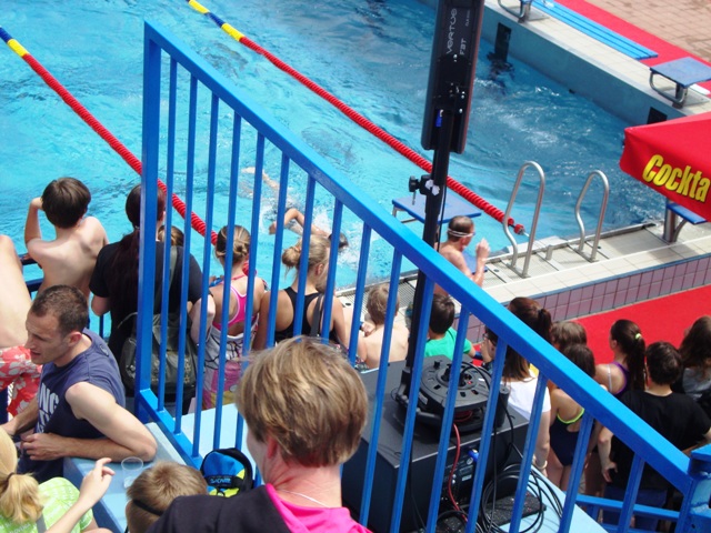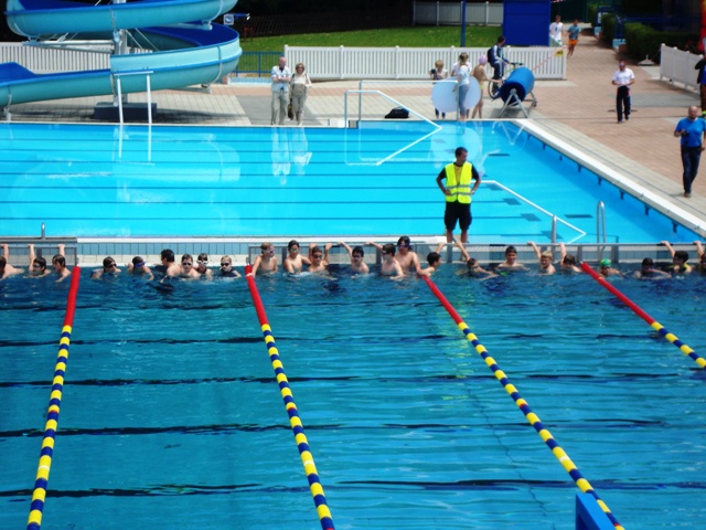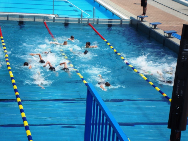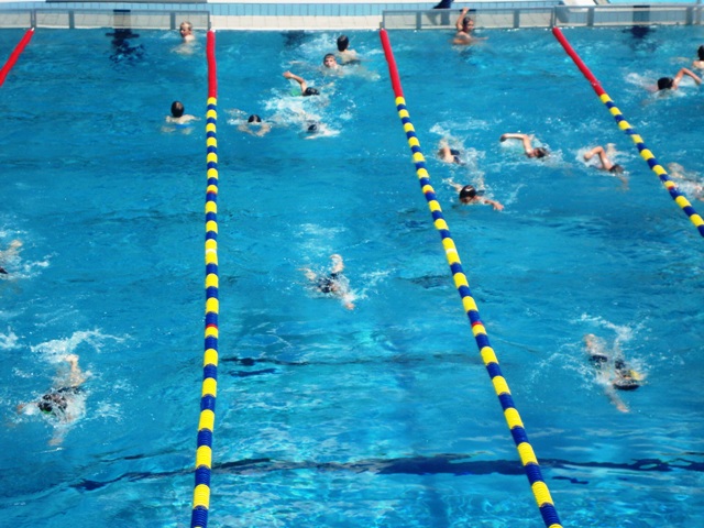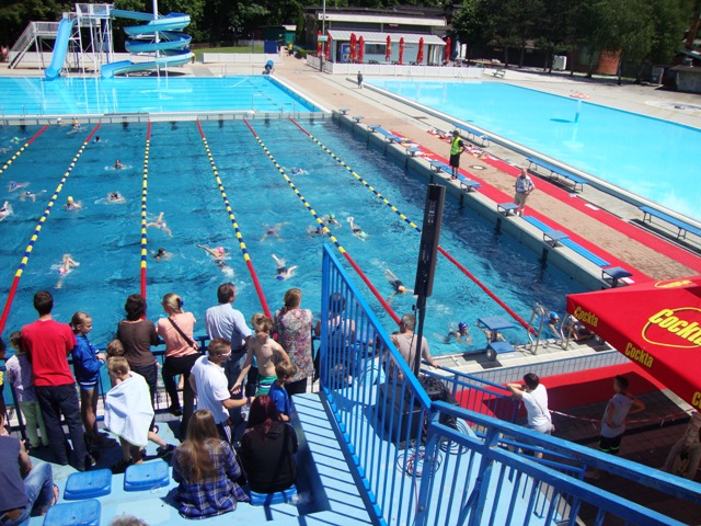 širini bazena, prehod iz plavanja v tek poteka v menjalnem prostoru,