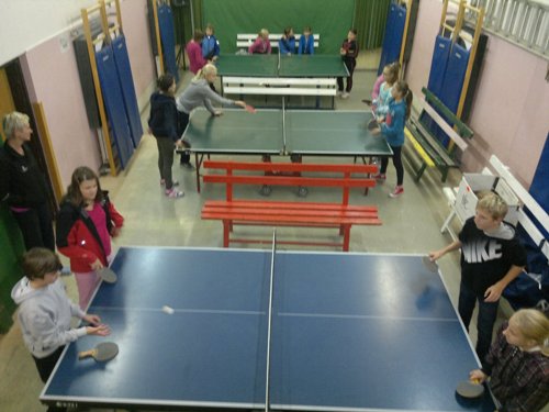 DAN JUHUHU! Naš astronomsko- športni tabor se je pričel takoj potem, ko smo okupirali sobe in nekaj prigriznili. Razdelili smo se v skupine, v katerih smo... ... igrali namizni tenis...