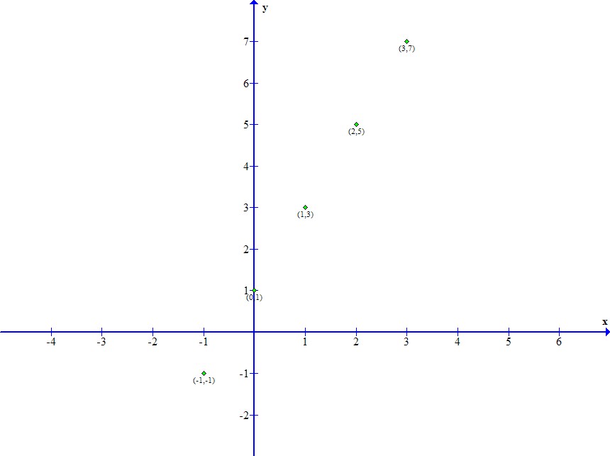 Točke med seboj povežemo,ker je linearna funkcija preslikava iz realnih števil v realna števila narišemo premico, ki neskončna in predstavlja vse pare točk, ki ustrezajo dani funkciji.