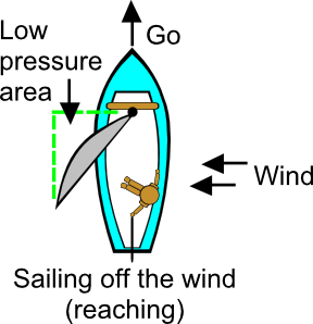 je jadranje Pri katerem nam veter piha v hrbet, zato je treba jadra