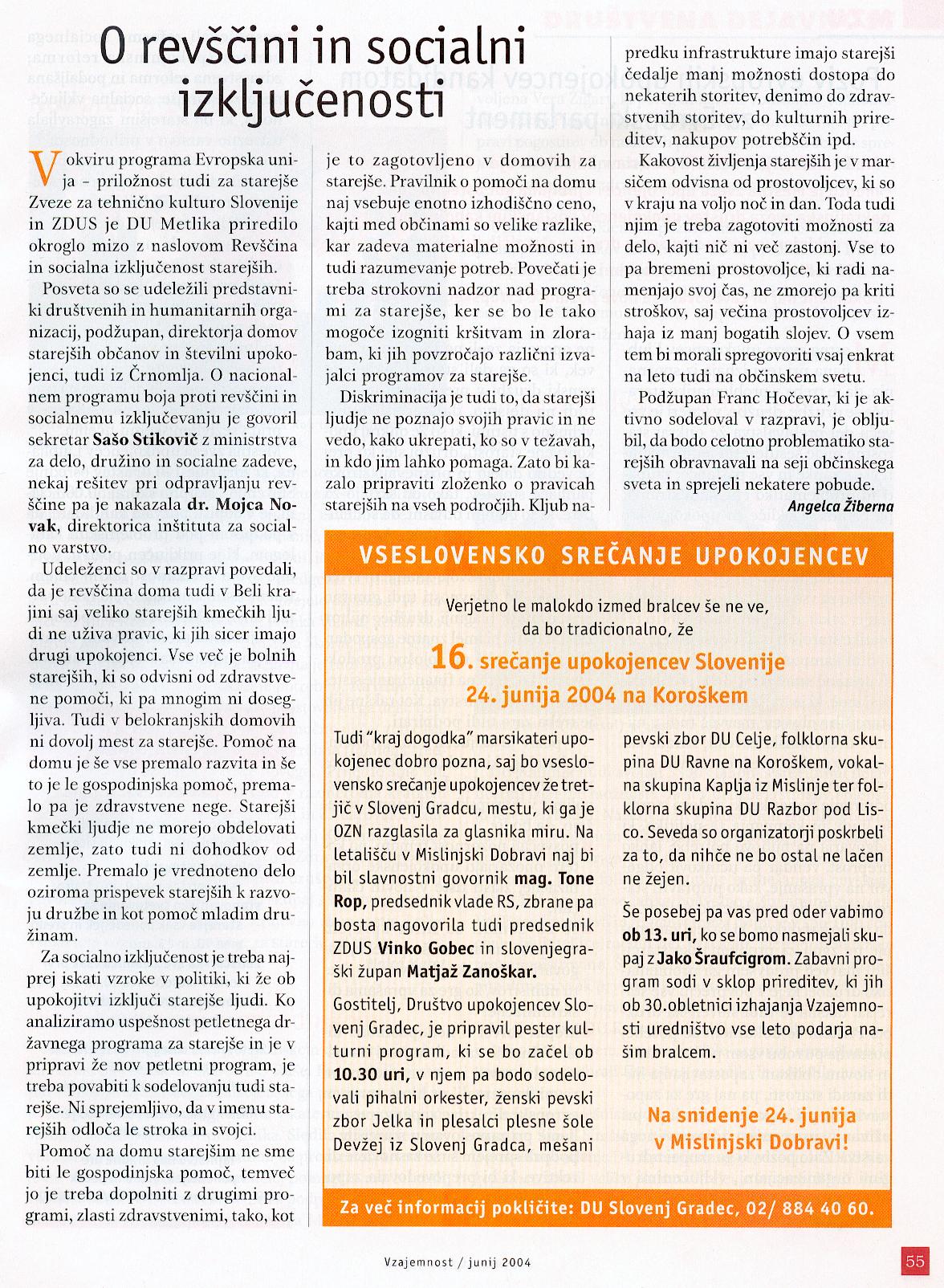 Vzajemnost, junij 2004