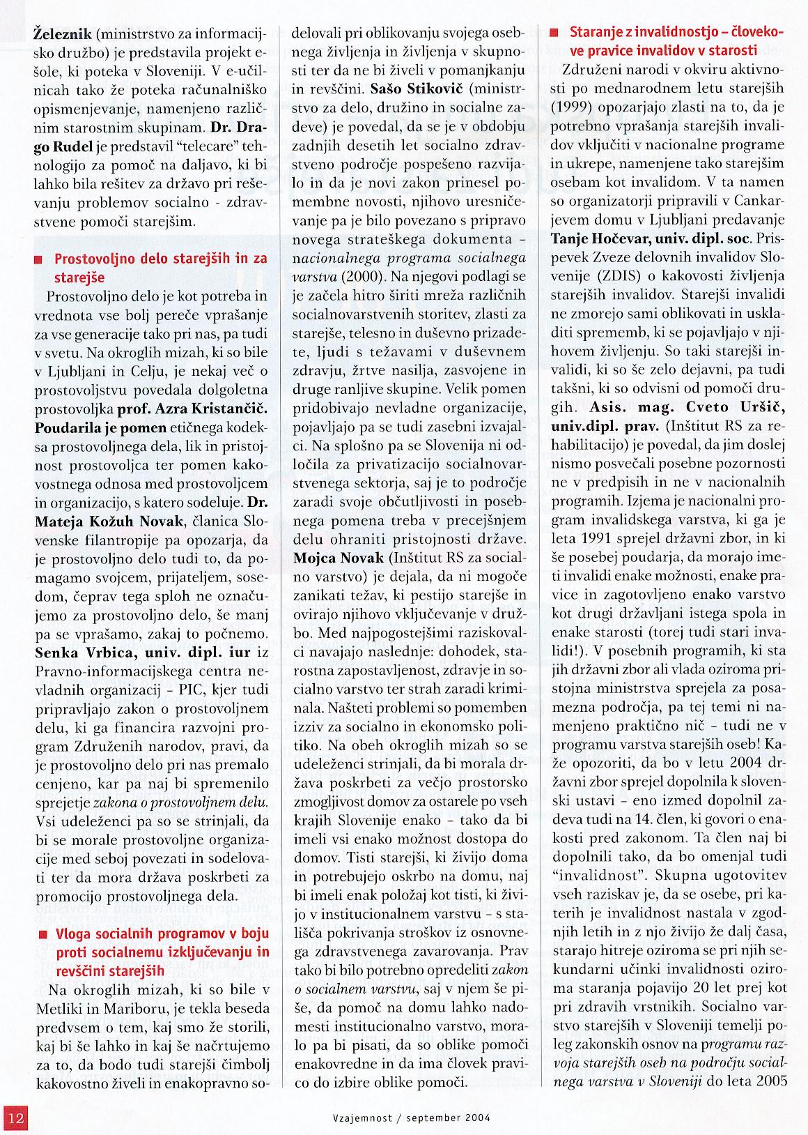 Vzajemnost, september 2004